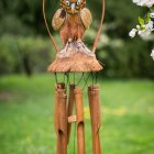 Dzwonek wietrzny wykonany jest z drzewa bambusowego oraz Orzecha kokosowego połączonego mocną linką.