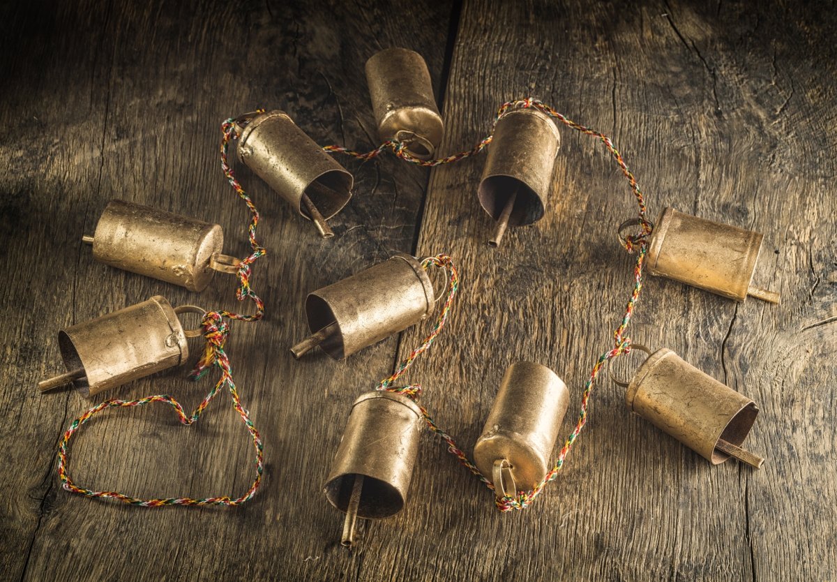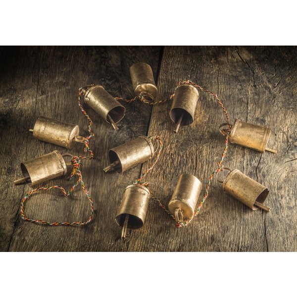 Dzwonki metalowe pasterskie - girlanda ozdoba na sznurku