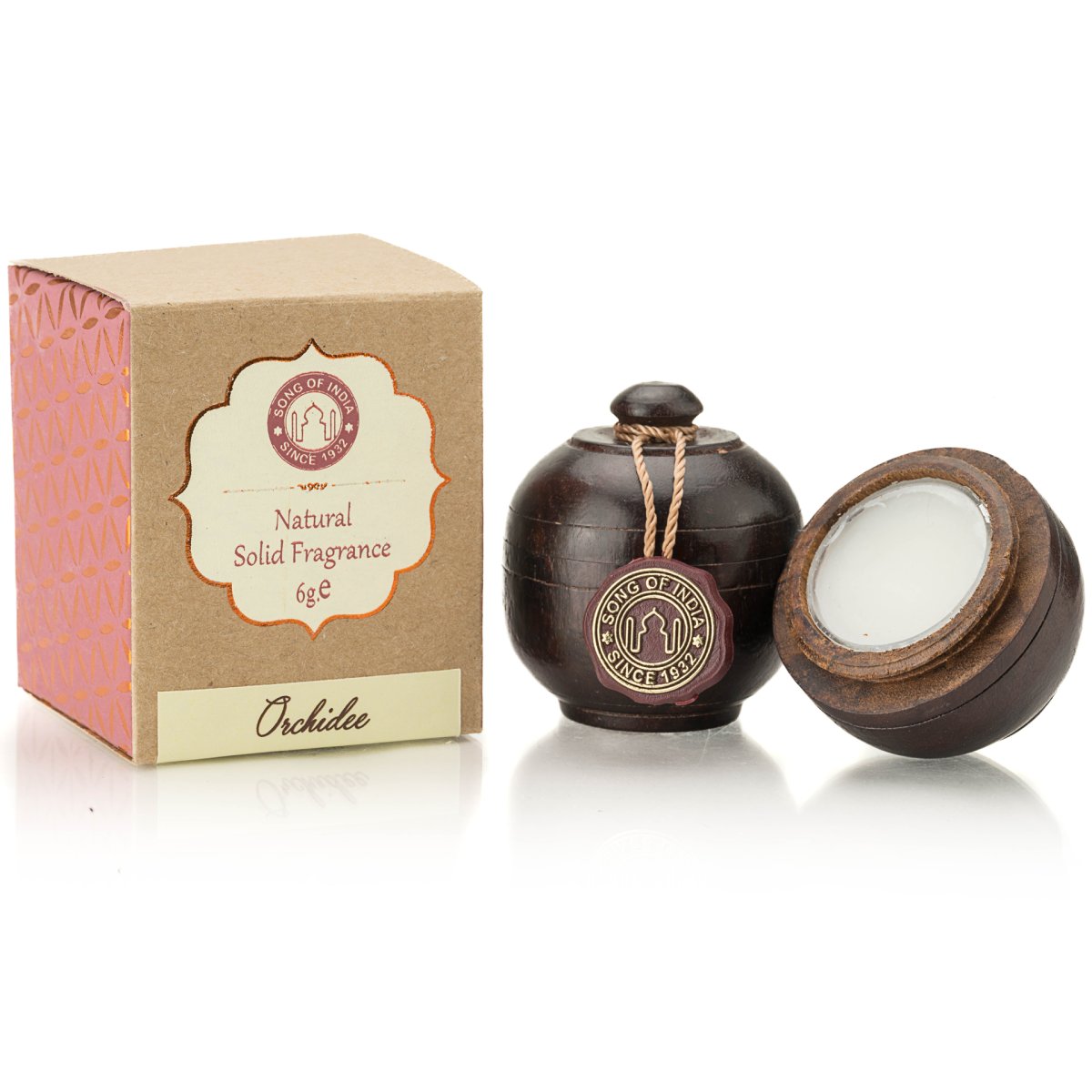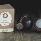 Opakowanie: ręcznie wykonany słoiczek z kory indyjskiego palisandru – każdy egzemplarz jest unikatowy