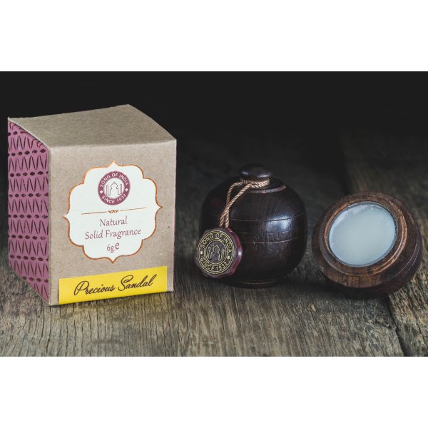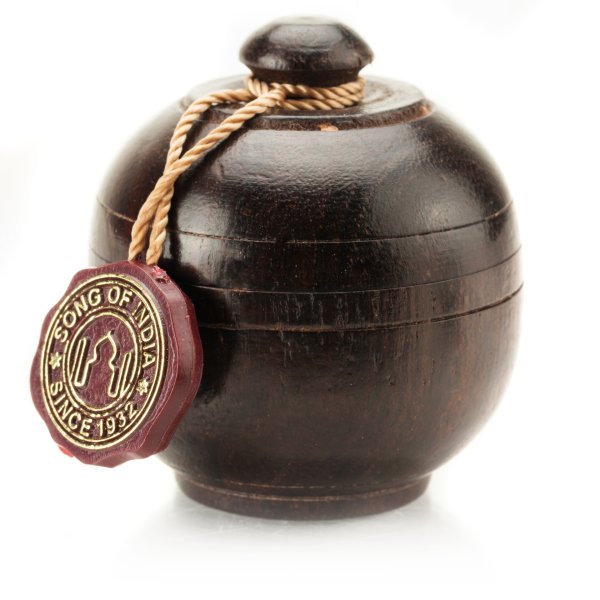 Opakowanie: ręcznie wykonany słoiczek z kory indyjskiego palisandru – każdy egzemplarz jest unikatowy
