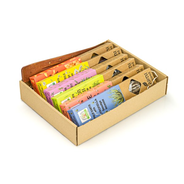Kadzidełka zapachowe Namaste India – zestaw prezentowy 6 zapachów + indyjska podstawka