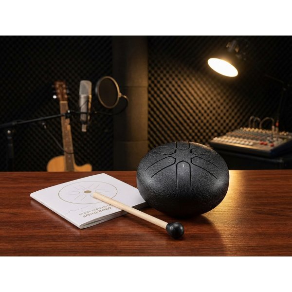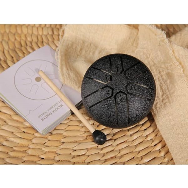 Tonguedrum 3 cale to niewielki, czarny instrument perkusyjny, który pozwala tworzyć delikatne, harmonijne melodie w kilka chwil. Dzięki kompaktowym rozmiarom bez problemu zmieści się w plecaku, torbie czy szufladzie. To idealny wybór dla osób szukających przenośnego instrumentu do relaksu, medytacji lub zabawy z muzyką.