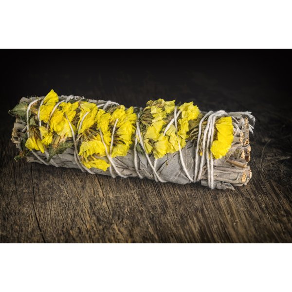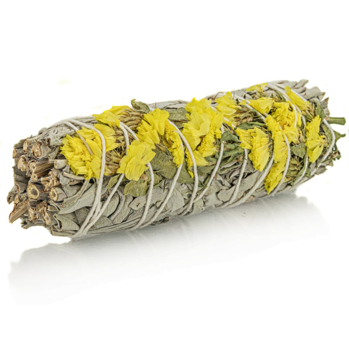 Biała szałwia od wieków wykorzystywana jest w rytuałach oczyszczających, a dodatek kwiatów sinuaty (zatrwianu wyrębnego) nadaje jej wyjątkowego charakteru. Dzięki temu połączeniu kadzidło nie tylko oczyszcza przestrzeń z negatywnej energii, ale także wzbogaca ją o piękne kolory i delikatną nutę ziołowego aromatu.
