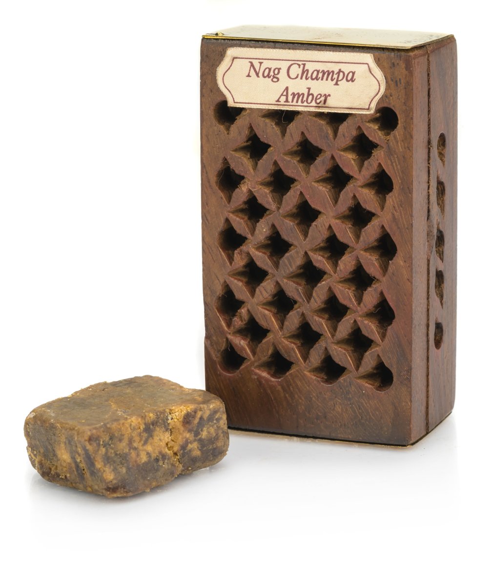 Zamknięta w ręcznie rzeźbionej, drewnianej szkatułce żywica zapachowa to doskonała alternatywa dla popularnych kadzideł i olejków eterycznych. Żywica powstaje z połączenia, pochodzących z tropikalnych lasów Indii i Afryki, żywic i oleożywic które są odpowiednio rozdrobnione, zmieszane i delikatnie ogrzewane i chłodzone do utworzenia się formy krystalicznego bursztynu. Niepowtarzalny, ciepły, korzenny aromat rozniesie się po domu, biurze lub samochodzie.