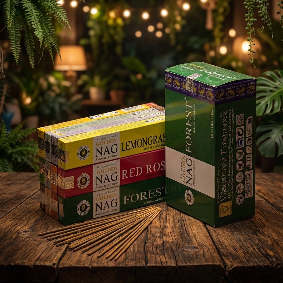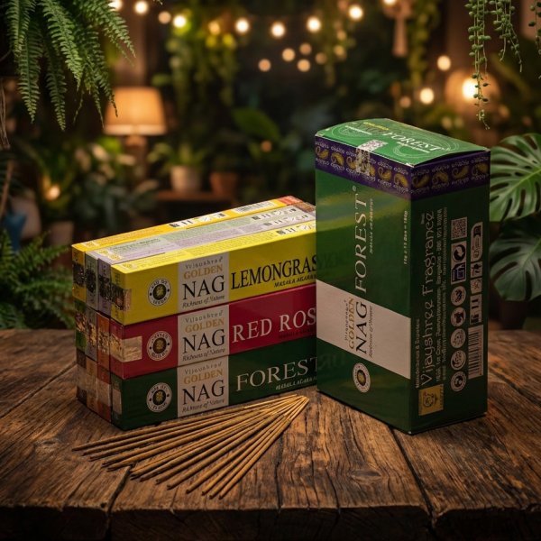 Każde kadzidełko powstaje z najwyższej jakości składników – naturalnych ziół, przypraw, egzotycznych olejków i kwiatowych ekstraktów. Produkty Vijayshree Golden Nag to kwintesencja indyjskiej tradycji perfumeryjnej, tworzone z miłością i szacunkiem dla natury. Ich unikalna receptura zapewnia intensywny i długotrwały aromat, który nie tylko wypełnia przestrzeń, ale też harmonizuje ciało i ducha.