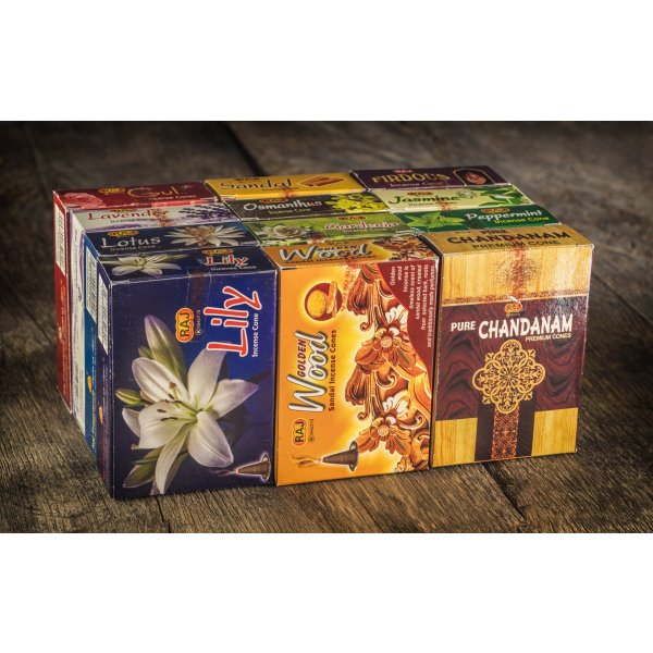 Kadzidełka stożkowe Raj Fragrance - zestaw 12 zapachów