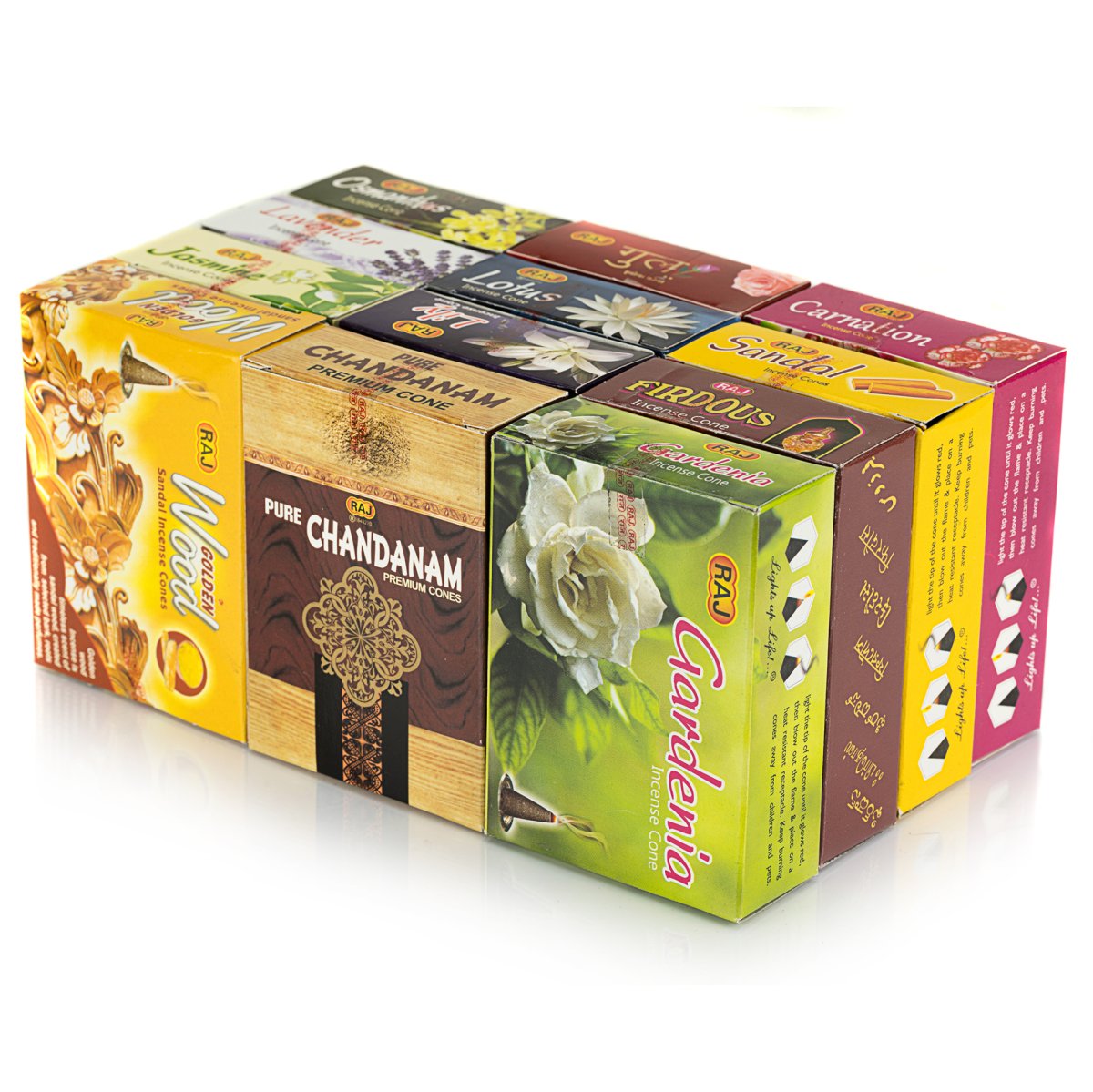Kadzidełka stożkowe Raj Fragrance – Zestaw 12 wyjątkowych zapachów