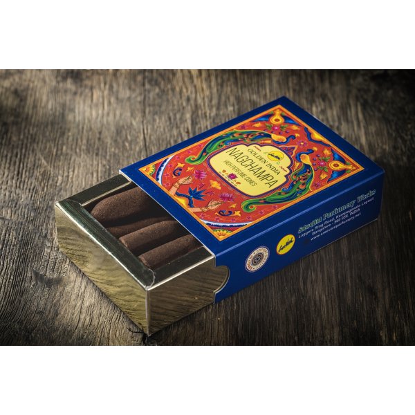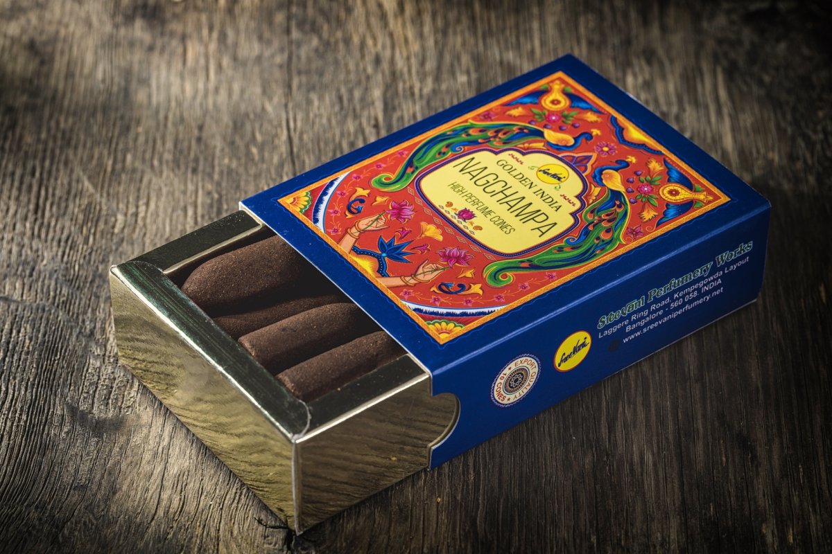 Nag Champa - „Champa” to aromat żeńskiej Laxmi, bogini bogactwa. Może być przydatny w łagodzeniu bólu głowy, reumatyzmu, dny moczanowej, alergii, problemów żołądkowych i moczowych. Utrzymuje oczy w chłodzie, odświeża i aktywuje mózg.