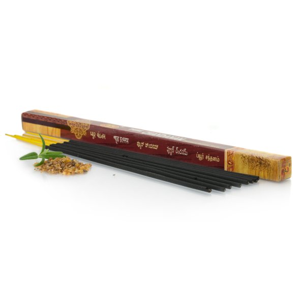 Skład kadzidełek: naturalny proszek z drzewa sandałowego połączony z ziołowym, korzennym, owocowym i żywicznym olejkiem eterycznym ( w zależności od zapachu), patyczek bambusowy