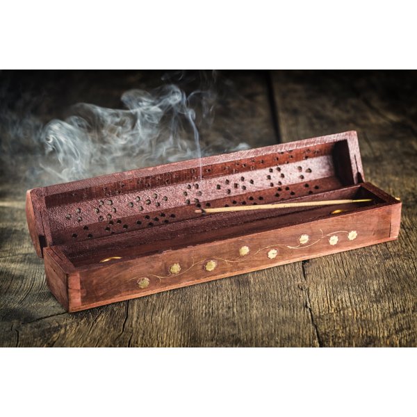 Dzięki specjalnym otworom, podstawka pozwala na bezpieczne palenie zarówno klasycznych kadzidełek, jak i stożkowych. Schowek pod spodem umożliwia przechowywanie niewypalonych jeszcze kadzidełek, co jest niezwykle wygodne i praktyczne. Zdobiona pokrywka dodaje całości elegancji, a jednocześnie chroni kadzidełka przed kurzem i uszkodzeniami.