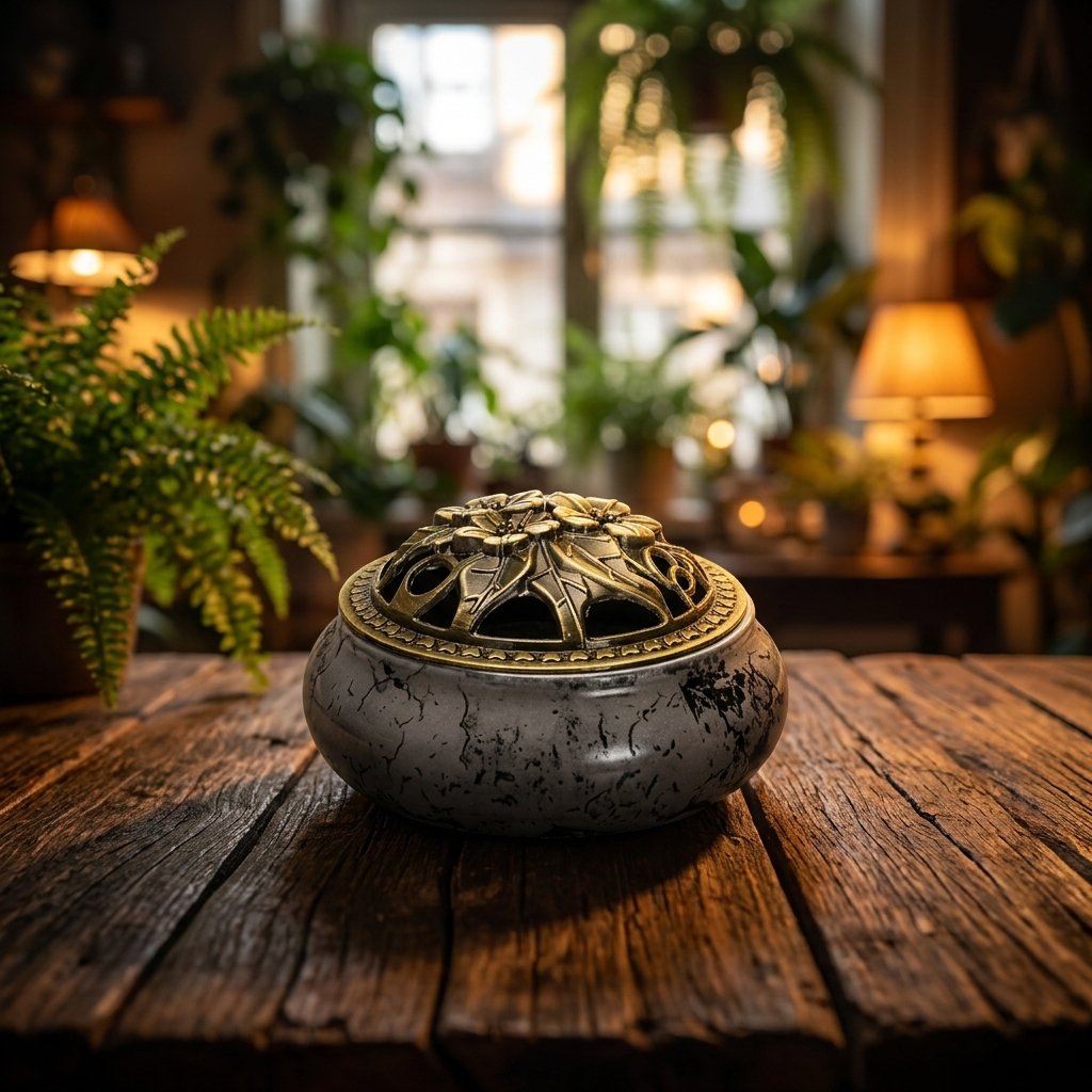 Indyjska Kadzielnica Ceramiczna na Kadzidła Żywiczne - Szara