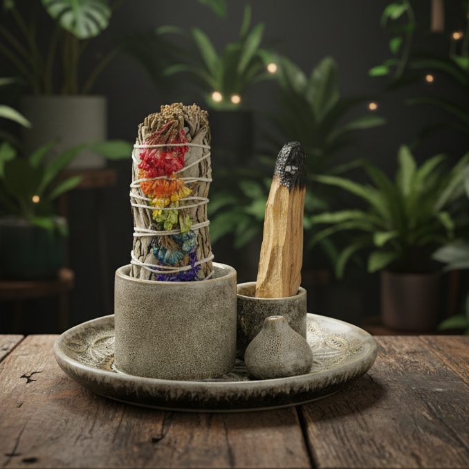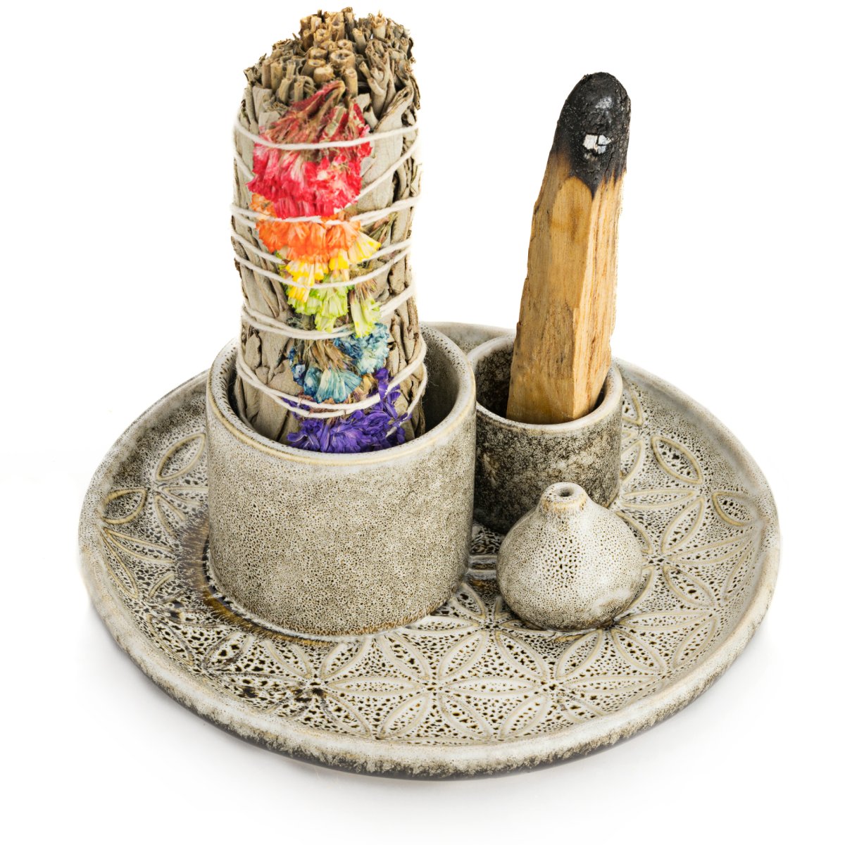 Ceramiczna podstawka pod kadzidła, Palo santo i Białą szałwie
